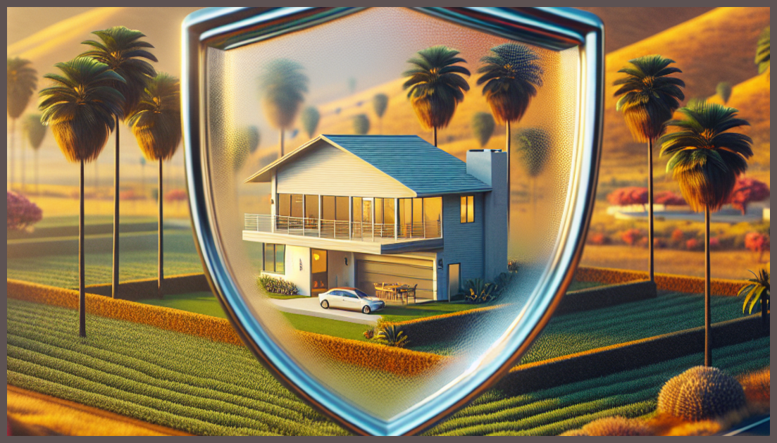 California house with insurance shield overlay